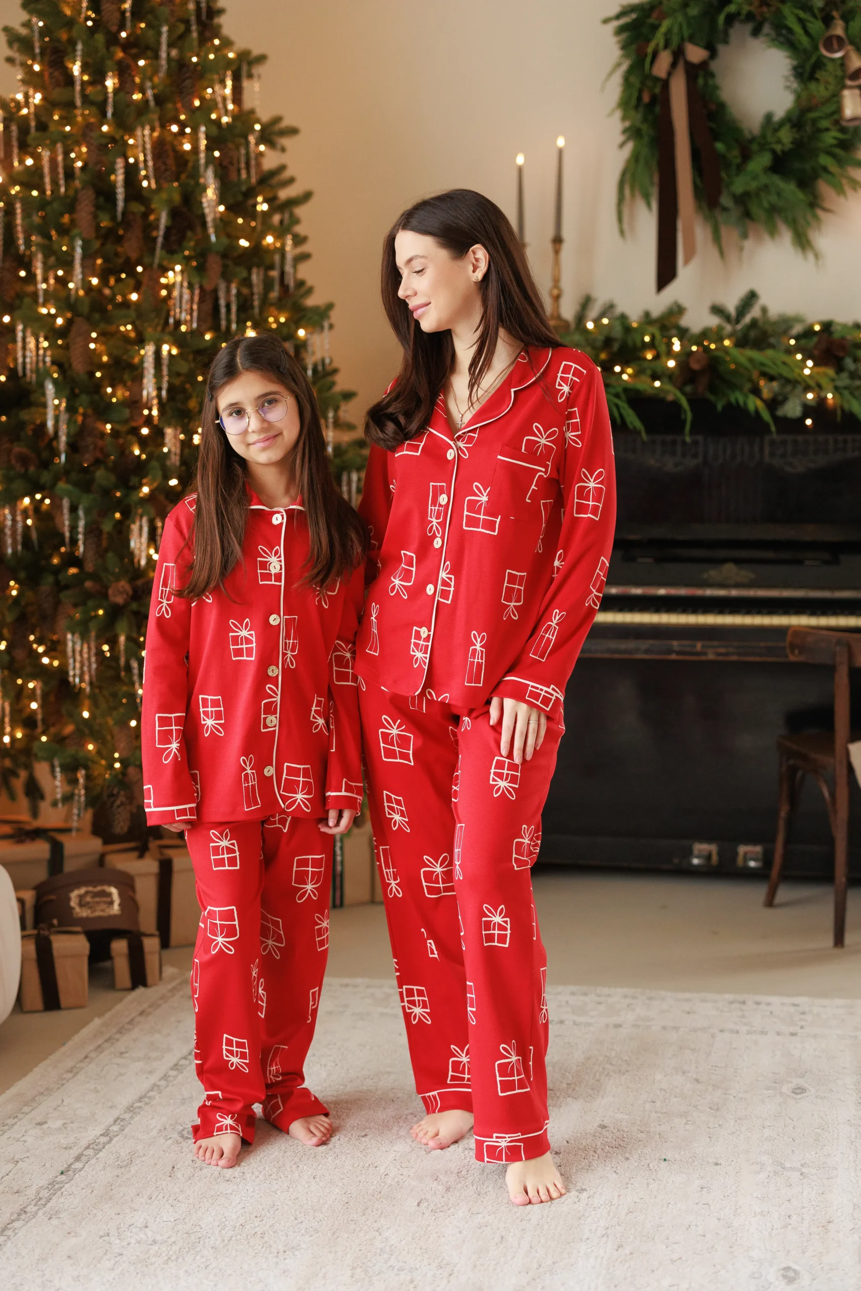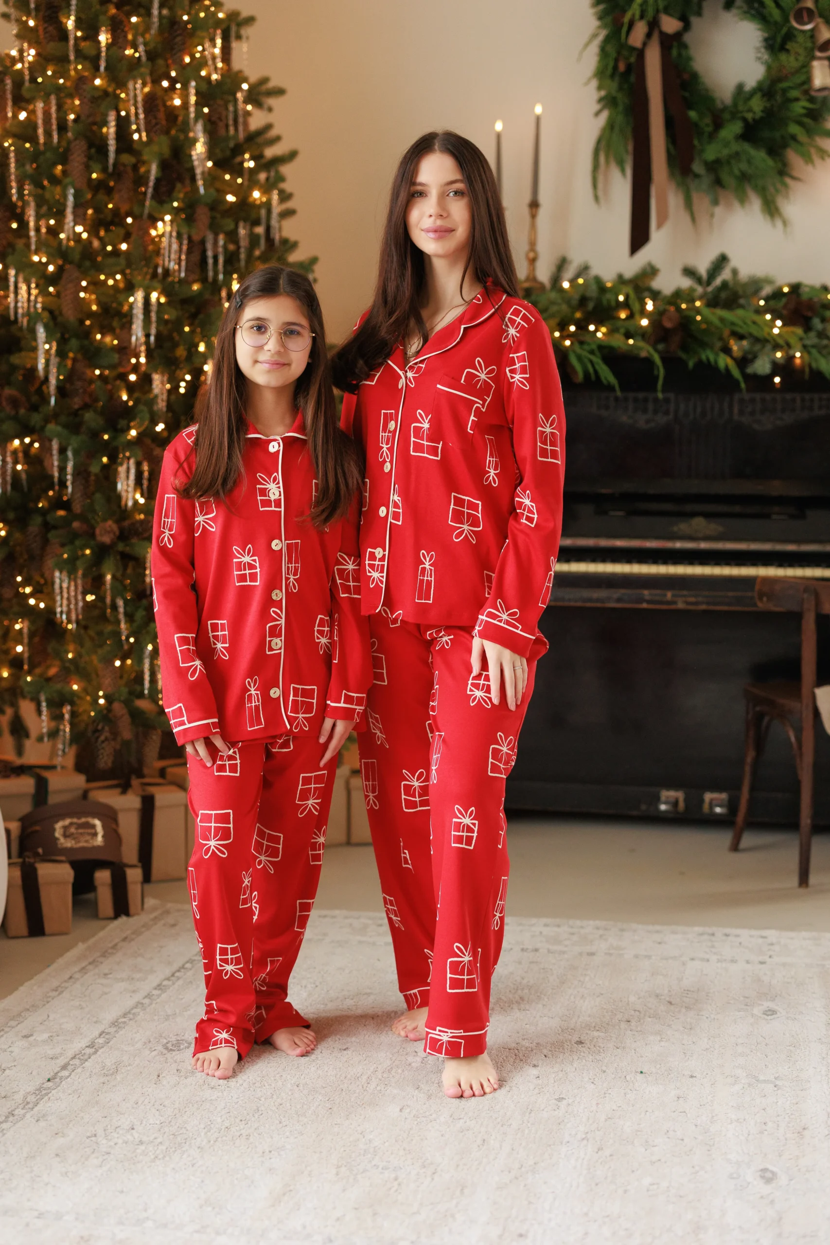 În magazine este disponibil acest model de pijama și în culoarea roșu fără imprimeu.